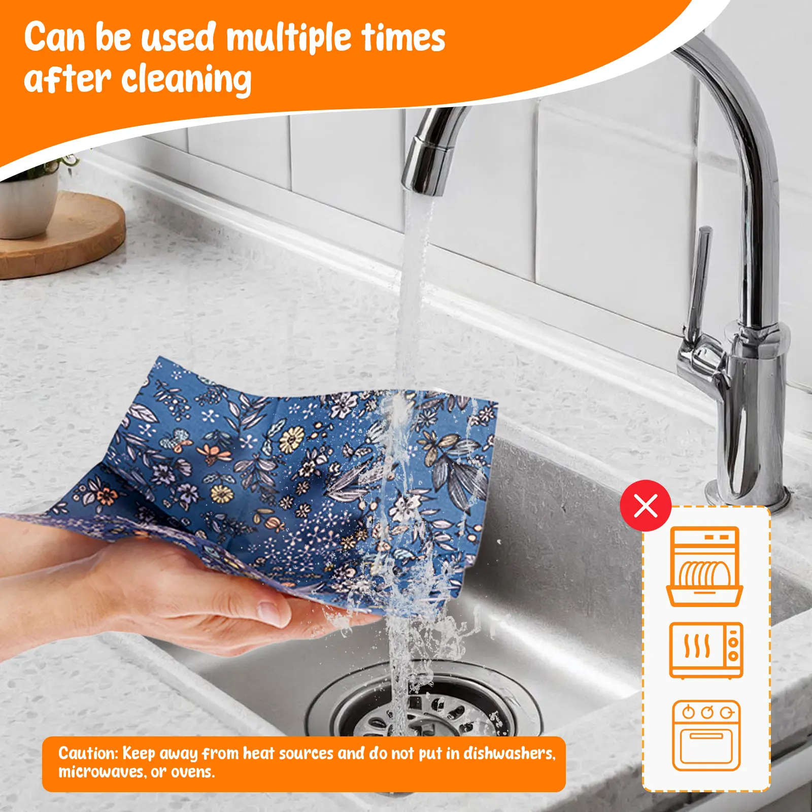 【No Hassle Cleaning】No plastic beeswax food wrap supports gentle hand washing in cold water (avoid hot water and dishwasher) , and the adhesion can be restored after drying , and it can be reused about 200 times according to the standard (the normal use cycle is about 1 year)